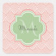 Chic Pink Arched Scallops Soft Green Monogram Name Square Sticker