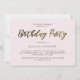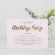 Chic blush pink modern birthday party invitation with pretty typography and fun confetti dots.