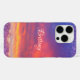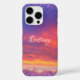 Enjoy nature’s beauty whenever you use this stunning, inspirational photo personalized name cell phone case of a gorgeous, colourful yellow, pink, orange and blue sunset, tipped with tiny, sparkly purple and gold, girly glam confetti dots. Makes a great gift for someone special!