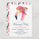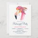 Chic Pink Flamingo retirement party invitation. Invite features pink boho feathers pattern on back.