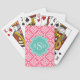 Chic pink girly greek key patterns monogram playing cards