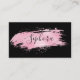Chic Pink Metallic Foil Paint Stroke Business Card | This pretty pink faux textured metallic foil paint stroke has a cursive calligraphy font that features your name on front and contact information on the back - you can change the background colour but we feel it looks best on black as it makes the pink foil really POP- perfect for any fashion, art, interior decor or consultant - TIP: Looks best on the semi gloss card stock or signature gloss card stock - There is NO real foil on this product it is artistically created to appear real