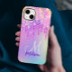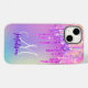 Chic pink rose unicorn dripping glitter monogram Case-Mate iPhone case