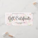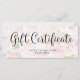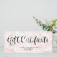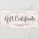 This stylish, trendy gift certificate features an elegant blush pink roses pattern background, with modern black handwritten script.