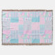 Chic Pink Roses on Sky Blue Faux Patchwork Throw Blanket