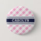 chic preppy pink navy gingham pattern monogram 2 inch round button