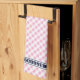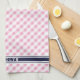 chic preppy pink navy gingham pattern monogram kitchen towel