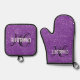 Chic purple glitter script monogram name oven mitt & pot holder set
