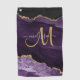 Chic Purple Gold Glitter Agate Custom Monogram Golf Towel