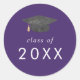 Chic Purple Grad Cap Class Year Graduation Classic Round Sticker