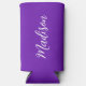 A pretty personalized purple monogram seltzer can cooler for a guy or girl who loves simple, handwritten gifts. Beautiful white cursive script down the side spelling out your name in elegant script.