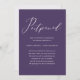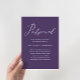 Elegant change the date wedding postponement announcement. This dark purple announcement is a chic way to let invited guests know that your wedding date is being rescheduled due to unforeseen circumstances, and features beautiful postponed calligraphy script.