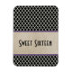 Modern and stylish Chic Quatrefoil Sweet Sixteen Premium Magnet featuring a trendy moroccan pattern background, a vintage paper look background and a pair of thin purple stripes. This hip and elegant magnet is perfect for a super fun sweet 16 party favour! Easy to customize, simply add your own personalized text. Click "Customize It" to find more personalization options.