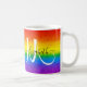 Have your morning coffee in style with this custom glitter and glam coffee mug. The chic rainbow striped design includes shades of red, orange, yellow, green, blue and purple faux glitter with a monogram initial in modern white script and name in modern black script for you to personalize. Show your pride!