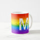 Have your morning coffee in style with this custom glitter and glam coffee mug. The chic rainbow striped design includes shades of red, orange, yellow, green, blue and purple faux glitter with a monogram initial in white and name in modern black script for you to personalize. Made just for you by ExtremeTees!
