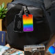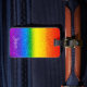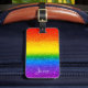 Travel with this chic luggage bag tag. The glam rainbow striped faux glitter design includes shades of red, orange, yellow, green, blue and purple with your name to personalize in white script. The back of the bag tag is black with your contact details in white. Made just for you by Extreme Tees!