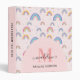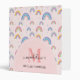 Chic Rainbow Heart Script Monogram Boho Pink 3 ring binder