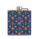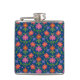 Un Hip Flask chic enveloppé de vinyle, avec un motif coloré de Fleurs et Pois orange et rose sur un Arrière - plan bleu profond que vous pouvez changer si vous le souhaitez. (Noir, Blanc, Jaune doré et Turquoise sont de bonnes alternatives !) Faisant partie de la collection Posh & Painterly 'Rangoli', ce joli motif carrelé peut être ajusté pour s'adapter à n'importe lequel des flacons de hanche.