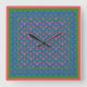 A chic Square Acrylic Wall Clock, with a colourful pattern of Red and Pink Flowers and matching Polka Dots on a Deep Blue Background. Part of the Posh & Painterly 'Rangoli' collection.