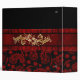 Elegant all purpose Avery binder, with a red on black paisley pattern, on the bottom and a solid black, on top. Graphics of a pretty dark red satin looking ribbon runs across the middle of the binder and has a gold tone floral flourish, in the middle of the ribbon. Golden yellow text, on the front cover, is ready to personalize for yourself or as a gift. Great for home or office use. Inserts and pages sold separately at your local office or craft supply stores.