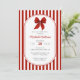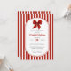 Red and white striped bridal shower invitations with a red bow design offer a festive and eye-catching way to celebrate the bride-to-be. This elegant invitation features bold vertical candy cane stripes in vibrant red and crisp white, creating a cheerful yet sophisticated backdrop. A red ribbon bow adds a charming and celebratory accent, making it perfect for bridal showers with a romantic or vintage flair. The clean, modern typography is beautifully balanced with a handwritten-style script for the guest of honour’s name, giving the layout a polished and personalized look. Ideal for festive summer events or holiday-themed bridal showers, this design brings together classic patterns and vibrant colour for a high-impact presentation that stands out. Available as printed cards or an instant digital download.