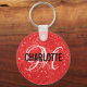 Chic red glitter keychain with a white script monogram and a black typography name. Personalize with your name and initial.