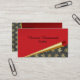 Stylish business card done in red, with graphics of a gold tone curled bottom corner, on the front, with a grey with gold pattern, below it. Black text, on the front and back, is ready to personalize to your needs. Lovely stand out card that packs a great impression.