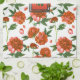 Chic Red Peonies Blooming Flowers Pattern Monogram Kitchen Towel