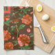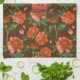 Chic Red Peonies Blooming Flowers Pattern Monogram Kitchen Towel