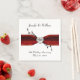 Lovely special occasion paper napkins, with graphics of a diamond like heart on a red damask ribbon, with black flourishes. Personalize the black text for your event.