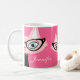 Have your coffee or tea every morning with Cha Cha Cat a chic little kitty with a lot of style. Personalize the mug with your name. Would make a great cat lover gift. To change the background colour or to select a different font, just click on the Customize It button.
