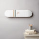 A minimalist monogram design with large typography initials in a classic font with your name below and chic retro rainbow coloured stripes.