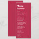 Add a bold and stylish touch to your reception with the Chic Retro Summer Bright Hot Pink Wedding Menu. Featuring a vibrant hot pink colour palette and retro-inspired typography, this menu blends vintage charm with modern elegance. Perfect for showcasing your carefully curated wedding menu, it adds a fun and sophisticated flair to your tablescape. Fully customizable to match your unique wedding style!