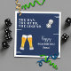 An elegant modern design featuring two beer glasses, rolling dices and a funny saying for the birthday person. Customize the details for a unique and chic Birthday Celebration.