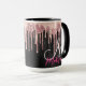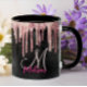 Chic rose blush, black glitter dripping monogram Coffee mug. A girly and trendy glittery modern mug. It makes the perfect sweet 16 birthday, wedding, bridal shower, anniversary, baby shower or bachelorette party gift for someone that loves glam luxury and chic styles. Whether for valentines day, Christmas or any occasion in general this cute coffee mug will make a great gift idea for any girl or woman who loves modern sparkly elegance.