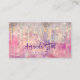 Chic rose blush pink holographic dripping monogram business card