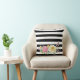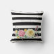 Chic Rose Floral Trendy Black Stripes and Name Throw Pillow