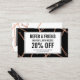 Coordinates with the Chic Rose Gold Bobby Pins Hair Stylist Black Business Card Template by 1201AM. A fun and eye-catching design of falling faux rose gold bobby pins create an intriguing background on this stylish referral card for hairstylists, hair salons, beauty consultants and more. Update the promotion for your own offering. Art and design © 1201AM CREATIVE