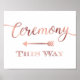 Chic Rose Gold CEREMONY THIS WAY - LEFT ARROW Sign
