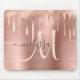 Chic Rose Gold Dripping Brushed Metal Blush Script Mouse Pad