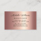 This modern professional business card is perfect for makeup artists and interior designers as well as other professions where you want a touch of glitter and glam. The design features a rose gold faux dripping glitter design on the front with your name and profession in black script to personalize. The back of the card is a matching rose gold with your contact details to customize. Designed by artist Susan Coffey.