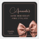 Chic Rose Gold Glitter Bow Sweet 16 Birthday Square Sticker