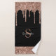 Chic Rose Gold Glitter Drips Black Monogram Name Bath Towel Set