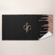 Enjoy this elegant design featuring your name and monogram or initial with chic and sparkly rose gold copper glitter drips over a black background.