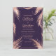 This elegant, modern, and chic wedding invitation is the perfect design for your special day. It depicts a faux printed rose gold foil metallic artsy leaves with a sparkly rose gold glitter frame on top of a moody plum purple background. It's a simple, contemporary, and unique luxe design.