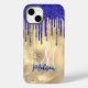 Chic royal blue gold glitter drips monogram Case-Mate iPhone case