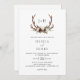 This chic rustic wedding invitation with antlers features the monogram initials of the bride and groom framed by stag antlers which are decorated with a watercolor burgundy floral bouquet. Please contact me through Zazzle Chat if you need design tweaks, more matching products, or other colorways.