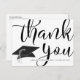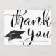 Custom graduation thank-you postcard personalized with the graduate's name and class year on the front along with a full-bleed over-sized THANK YOU title with a black and silver tassel graduation cap design. The opposite side offers the option to pre-print your thank-you message or opt to delete the sample text to leave the area blank for handwriting notes of appreciation. Contact the designer via Zazzle Chat or makeitaboutyoustore@gmail.com if you'd like this design modified, on another product or would like coordinating items.