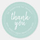 Elegant, modern and simple customer thank you label with the text thank you for supporting our business in white stylish script calligraphy and modern typography on a blue background. You can use the stickers for your small business product orders, packages, gift bags or as an envelope seal. Simply add your thank you text and add your business name or business website. Exclusively designed for you by Happy Dolphin Studio. If you need any help or matching products, please contact us at happydolphinstudio@outlook.com.