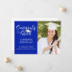 Modern, chic script typography CONGRATS TO OUR GRAD design in royal blue and white personalized with the graduate's name, Class Of graduating year, school or university name and photo against an editable black background on the front. The back offers a place to include additional information about the graduate or you can delete the sample text to leave the back blank. PHOTO TIP: For fastest/best results, choose a photo with the subject in the middle and/or pre-crop it to a similar shape as shown BEFORE uploading. Contact the designer via Zazzle Chat or makeitaboutyoustore@gmail.com if you'd like this design modified, on another product or would like coordinating items.